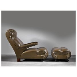 BROWN VINYL ARMCHAIR AND FOOT REST