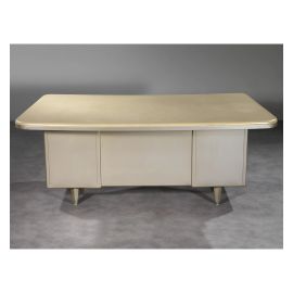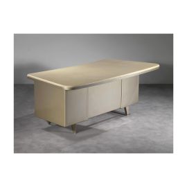 METAL DESK, TOP COVERED WITH IVORY VINYL