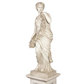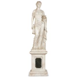 quattro sculture in marmo bianco vestite all’antica, su base in marmo bianco con formelle in marmo verde ai centri; tre siglate CM e una siglata C Marzi 1936 sulla base; alt. cm 170, base cm 80,5