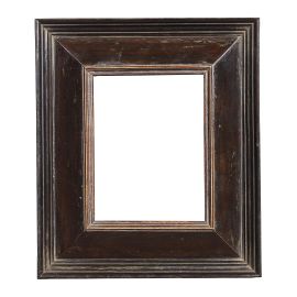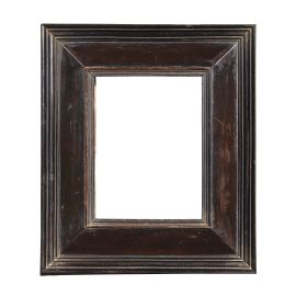 in legno ebanizzato, battuta si porta su fascia centrale che scende a muro con più ordini di gole; ingombro cm 24,5x21,2, luce cm 13,8x10,3