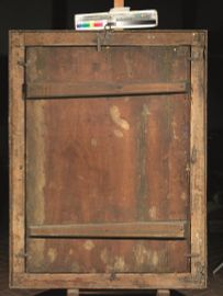 È appunto questa la caratteristica del dipinto qui offerto che, in base allo stemma e alle iniziali impresse a fuoco al retro della tavola, è stato possibile identificare come ritratto di un membro della famiglia Passerini, verosimilmente Domenico di Lorenzo, Podestà di Dicomano (carica cui potrebbe alludere la lettera che il personaggio ostenta tra le dita) e il figlio Lorenzo, nato nel 1591. Considerata l’età di quest’ultimo, intorno ai tre anni, l’esecuzione del dipinto può circoscriversi intorno al 1594.