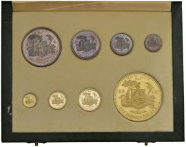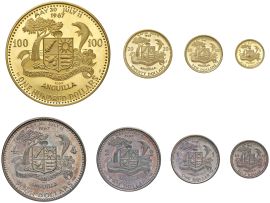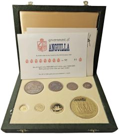ANGUILLA. TERRITORIO BRITANNICO D’OLTREMARE DAL 1962. PROOF SET 1968 DI OTTO MONETE (100, 20, 10 E 5 DOLLARI IN ORO 900; 4, 2, 1 E ½ IN ARGENTO 1.000). IN ASTUCCIO ORIGINALE E CERTIFICATO DI EMISSIONE N. 81