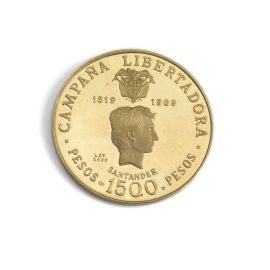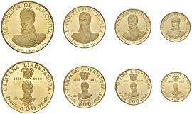 COLOMBIA. REPUBBLICA (DAL 1886). SERIE COMPLETA DI CINQUE VALORI IN ORO (1.500, 500, 300, 200, 100 PESOS 1969) IN ASTUCCIO ORIGINALE E CERTIFICATO DI EMISSIONE