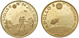 DUE MEDAGLIE IN ORO 900 COMMEMORATIVE DELLE MISSIONI LUNARI DEL 1968 E 1969