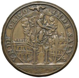 NICOLÒ CONTARINI (1630-1631) XCVII DOGE. MEDAGLIA CELEBRATIVA DELLA CHIESA DI SANTA MARIA DELLA SALUTE CONIATA NELLA ZECCA DI VENEZIA NEL 1631 OPUS ANONIMO