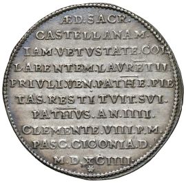 PASQUALE CICOGNA (1585-1595) LXXXVIII DOGE. MEDAGLIA CHE COMMEMORA LA RICOSTRUZIONE DELLA FACCIATA DELLA CHIESA DI SAN PIETRO DI CASTELLO CONIATA NELLA ZECCA DI VENEZIA NEL 1594 OPUS ANONIMO