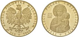 POLONIA. DUE MEDAGLIE IN ORO 900 EMESSE PER I MILLE ANNI (966-1966) DEL BATTESIMO CRISTIANO DELLA POLONIA