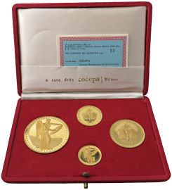 QUATTRO MEDAGLIE IN ORO 917 PER IL CINQUANTENARIO DELLA VITTORIA (1918-1968). IN ASTUCCIO ORIGINALE E CERTIFICATO DI GARANZIA