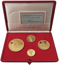 QUATTRO MEDAGLIE IN ORO 917 PER IL CINQUANTENARIO DELLA VITTORIA (1918-1968). IN ASTUCCIO ORIGINALE E CERTIFICATO DI GARANZIA