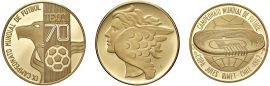 TRE MEDAGLIE IN ORO 900 COMMEMORATIVE DEI CAMPIONATI DI CALCIO DEL 1962, 1966 E 1970