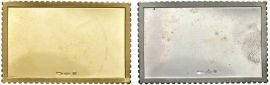 UN FRANCOBOLLO IN ORO 900 E UNO IN ARGENTO 925 DELLA SERIE “FIRST MAN ON THE MOON UITED STATES”