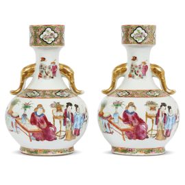 in porcellana Canton con due anse a forma di teste elefantine. Sono raffigurate scene di vita quotidiana.