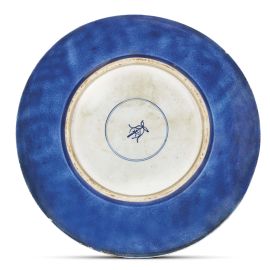 清 十八世纪 霁蓝釉描金花篮纹大盘 双圈花押款 直径51,5厘米