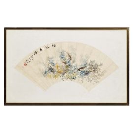 清 十九至二十世纪 花鸟鱼虫扇面一组四件 纸本设色 带框尺幅58,8x36,5厘米