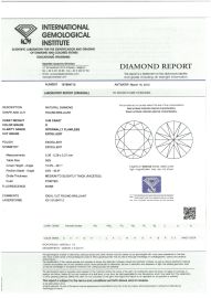 taglio brillante, di ct 0.56, colore D, purezza IF. Corredato di certificato IGI Anversa del 16/03/2015 attestante le caratteristiche.