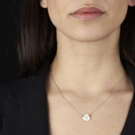 TWO NECKLACES WITH FLOWER-SHAPED PENDANTS IN 18KT WHITE GOLD