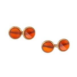 in oro giallo 18kt, di cui uno a dischi zigrinati, punzoni 750 e del fabbricante, dim. cm 1x4 circa; accompagnato da un secondo paio di gemelli con elementi circolari in corniola, punzone 750, dim. cm 1x3 circa, gr. 24 complessivi circa