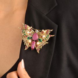 BIG BUTTERFLY-SHAPED MULTI-GEM BROOCH IN 18KT YELLOW GOLD