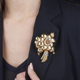 BIG FLORAL BUNCH-SHAPED DIAMOND BROOCH IN 18KT TWO TONE GOLD