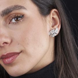 BRANCH-SHAPED DIAMOND EARRINGS IN 18KT WHITE GOLD