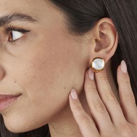 MOTHER OF PEARL AND DIAMOND EARRINGS IN 18KT YELLOW GOLD