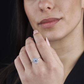 in oro bianco 18kt, impreziosito da diamanti taglio brillante per ct 0.20 circa, firmato "Salvini", punzoni 750 e del fabbricante, mis. 58, gr. 3. Corredato di scatola.