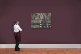 Zona Pedonale1959olio su tela cm 80x110firmato e datato in basso a sinistra al retro firmato e datatoal retro vecchio cartiglio