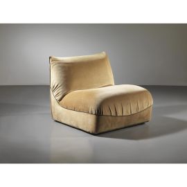 struttura in legno, imbottite e rivestite in velluto nei toni del beige con cordolo in pelle nei toni del marrone