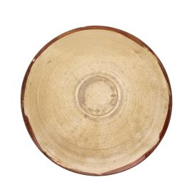 in maiolica decorata in lustro metallico, corpo svasato con tesa appena accennata e orlo estroflesso; la decorazione prevede al centro la raffigurazione di un animale contornato da quattro grandi garofani disposti simmetricamente, il tutto arricchito dei tipici decori secondari; diam. cm 35,5, alt. cm 8,6