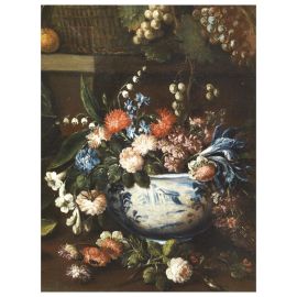 NATURA MORTA CON ORTAGGI, FIORI, PESCI E PAPPAGALLO