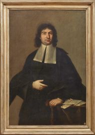 Iscritto "Al Magnifico Signor Sanson Verona" e "Milano 1686 [...]" sulle lettere posate sul tavolo.