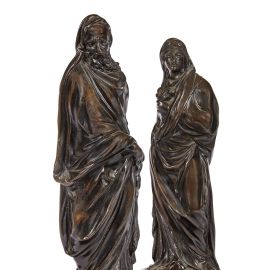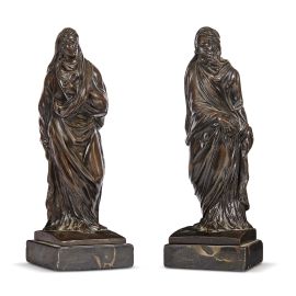 Florence, 18th century, A pair of allegorical figures, bronze, 23,2x8x7 cm, on black marble bases (bases 2,6x9x9 cm)