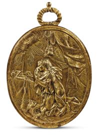 placchetta ovale in bronzo dorato, cm 14,4x9,5 (esclusa l’attaccaglia)