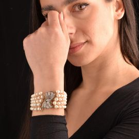 BRACCIALE A FASCIA CON PERLE E DIAMANTI