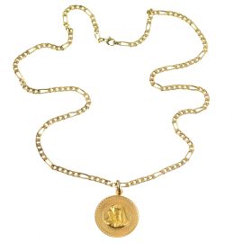 in oro giallo 18kt, composta da catena e medaglietta religiosa di diam. cm 3,5 circa, lungh. cm 73, gr. 43