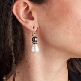 BAROQUE PEARL AND DIAMOND DROP EARRINGS IN GOLD AND SILVER