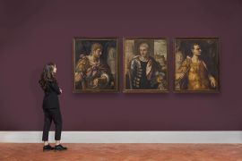 tre dipinti, olio su tela, cm 93x78; 91x76; 104x88
