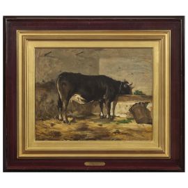 È uno dei pochi esempi conosciuti in cui Lega riprende il motivo dell’animale rustico tipico dei Macchiaioli, ma che appare inusitato nella sua tematica. Elencandolo nel catalogo della mostra di Modigliara, il Tinti ne dà una datazione incerta intorno all’80, quasi da lasciar pensare che in origine il quadro fosse mancante della data ’85 oggi ben evidente dopo la firma. Il carattere chiaramente autografo con cui questa si presenta porta a sottolineare però che non sarebbe questo l’unico caso in cui si rilevano delle imprecisioni nell’ordinamento cronologico dato dal critico.