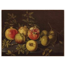 Essenziali nella composizione e nella scelta della frutta, ridotta a un’unica specie in una delle due tele, precisi nella descrizione delle superfici di cui, con passione degna di un botanico, viene documentata ogni imperfezione, i dipinti qui presentati rientrano – sebbene anonimi e per il momento privi di compagni usciti dalla stessa mano – fra i capolavori del primo tempo della natura morta romana.