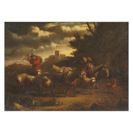 SHEPHERDS WITH DONKEYS AND A FLOCK