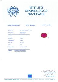 in oro giallo 18kt, al centro un rubino birmano taglio ovale (smontato) di ct 5.97, con fascia traforata impreziosita da diamanti taglio brillante per ct 1.20 circa, punzoni 750 e del fabbricante, mis. 12/52, gr. 11. Corredato di certificati SSEF del 13/09/2023 e IGN del 05/07/2023 attestante l'origine della pietra e l'assenza di trattamenti termici.