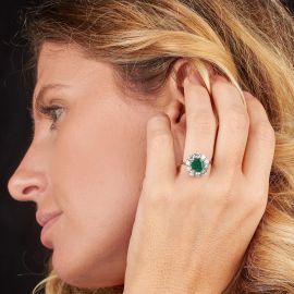 ANELLO A MARGHERITA CON SMERALDO E DIAMANTI