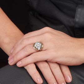 in oro giallo e bianco 18kt, impreziosito da diamanti taglio brillante per ct 3.60 circa, punzone 750, mis. 11/51, gr. 15