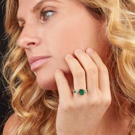 EMERALD AND DIAMOND RING IN 18KT YELLOW GOLD