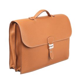 Raffinata borsa portadocumenti Hermès Sac à dépêches in pelle Clemence Gold, inserti in palladio, impunture, manico semplice in pelle da portare a mano.