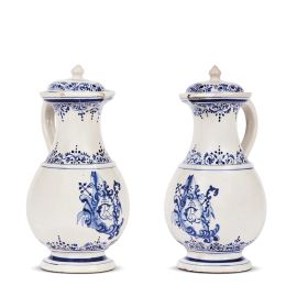 in maiolica dipinta in monocromia blu, composto da una coppia di versatoi con coperchio, una marescialla, due piattini per il pane, un'oliera con ampolle in vetro e due saliere. Il decoro è caratterizzato dalla presenza del monogramma CAR, abbreviazione di Cartusia, in uno scudo ornato da motivi fitomorfi e sormontato dagli attributi di abate. I pezzi infatti facevano parte di un importante “servito da pranzo” composto originariamente da 395 pezzi e realizzato nel 1765 dalla fabbrica del marchese Ginori su espressa richiesta del Priore Maggi, all’epoca abate dell’importante Certosa di Calci.