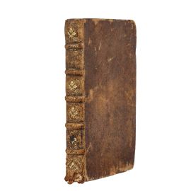 In 8vo piccolo (153 x 96 mm) in vitellino spruzzato coevo, dorso a nervi con decorazioni dorate (abrasioni e piccola mancanza al piede, sbucciature alle estremità dei piatti). Collazionato completo. -- Lavoro di tarlo restaurato al margine superiore (tocca qualche lettera in un paio di punti), frontespizio un po’ polveroso e con macchietta al piede, carte un po’ ingiallite.