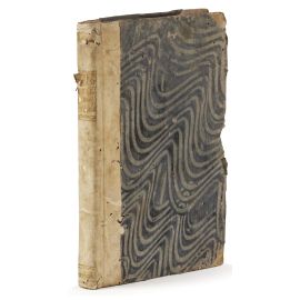 In 4to piccolo (190 x 126 mm) in mezza pergamena coeva con titolo dorato al dorso, tagli rossi. -- Legatura un po’ sciupata, brevi gallerie di tarlo alle prime e ultime carte e al fascicolo G (minime perdite), forellini di tarlo, collazionato completo.