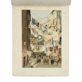Album oblungo (230 x 312) in brossura editoriale con titolo in oro e veduta a colori della Lanterna al piatto anteriore, rilegato con cordicella bianco/rossa con nappa, contenente una carta con titolo in oro e 15 tavole in cromolitografia. – Tracce d’uso al piatto anteriore, una macchietta al taglio laterale, per il resto molto ben conservato.