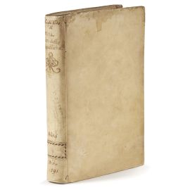 In 4to piccolo in pergamena rigida settecentesca con titolo anticamente manoscritto al dorso e tagli azzurri. Collazionato completo. -- Lavoretto di tarlo al margine inferiore dei fascicoli D-E e K-L, e altre trascurabili tracce del tempo, per il resto buona copia.